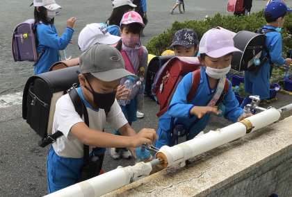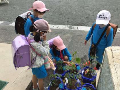 今朝の様子です。今日も水やりをしていました。