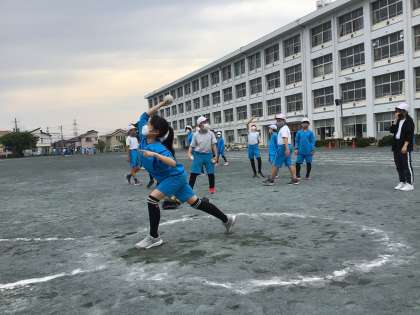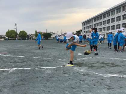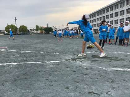 体力テストに挑戦!ソフトボール投げの様子です.