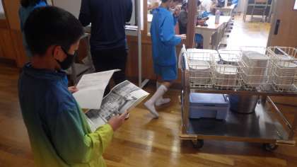 初めての常時活動に臨む5年生の給食委員でしたが、チェック時間前に担当教室へ行き、片付けの仕方まで丁寧に確認をしていました。