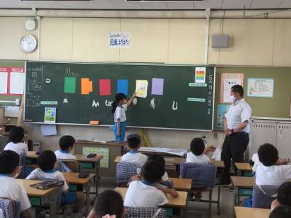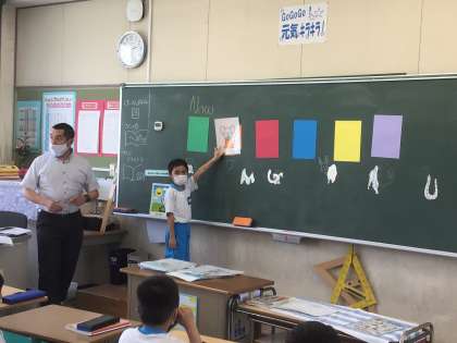 前に出て、みんなの前で発音しながら、動物カードを使って練習しました。とっても上手でした。