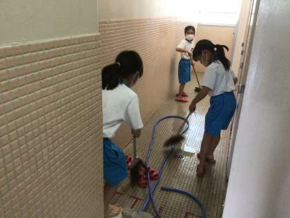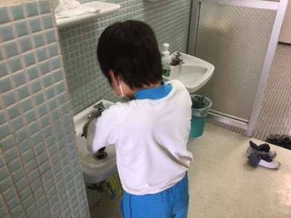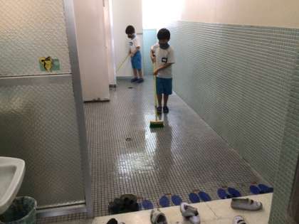 トイレ掃除、頑張っています。今日は、水を流して床を磨きました。