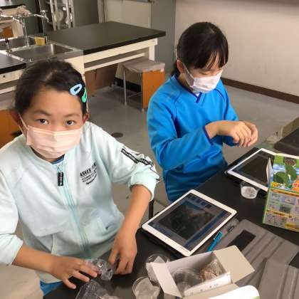 各クラスで実験を進めています。子どもたちはとてもいい顔で取り組んでいます。