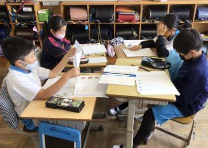 この日は、筆者の2つ目の問いである「ヤドカリは石についたイソギンチャクをどのようにして自分の貝殻につけるのか」について話し合いをしました。