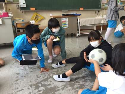 学習用タブレットも活用して遊びを行っている班もいました.