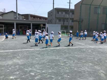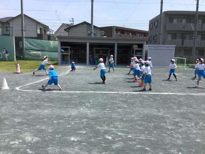ドッヂボールをしました。コートの線引きやルール決めも自分たちで行いました。
