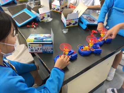 友だちと協力して実験しています。