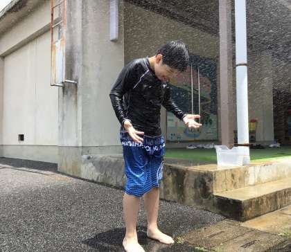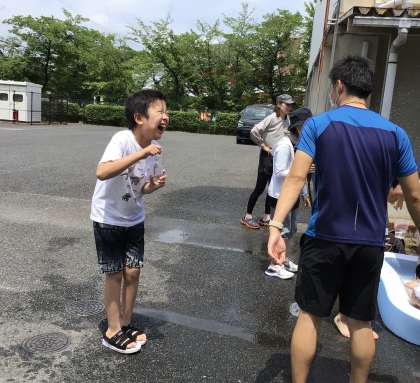 水着に着替えた後は、みんなで水遊びをしました。