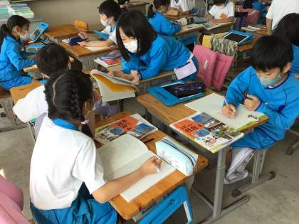 子ども達は、日本人1人が1日に約284リットルもの水を使うことに驚いていました。