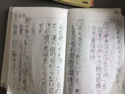 漢字練習をした後に、ドリルにのっている言葉を国語辞典で調べている子もいました。