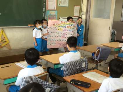 朝の会に、1年生の子が「学校探検」のお礼に来てくれました。たくさんのお手紙をもらいました。ありがとう!