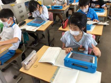 4組の授業の様子です。ヤドカリとイソギンチャクでの内容理解を深めていました。