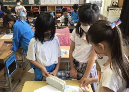 今朝の様子です。朝の会と朝の会終了後です。1時間目に使うプロジェクターの準備をしていました。友達と談笑している4年生もいました。