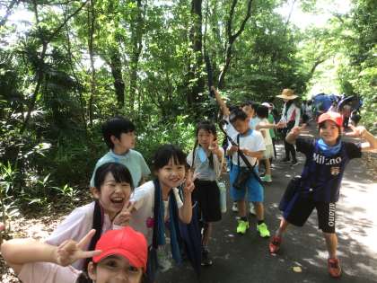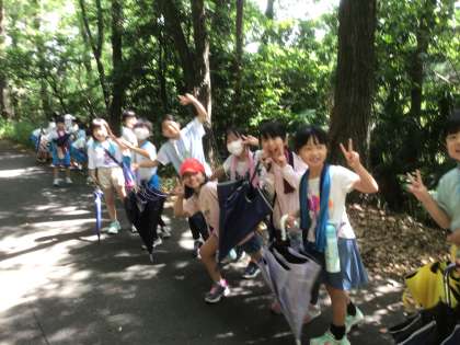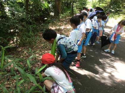 校外学習に出かけました。とっても暑い中でしたが、森の小道に入り、ひんやりした空気も味わえました。虫探しや、たくさんのお花を見て、気持ちのいい時間を過ごしました。