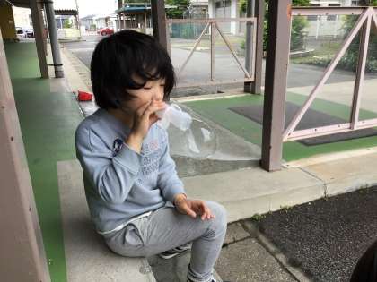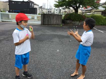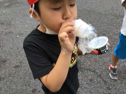 小さな泡がたくさん出るように、ペットボトルにネットを付けました。