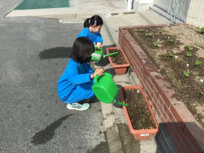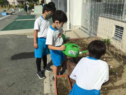 今朝の水やりの様子です。今日は、とても暑くなりました。