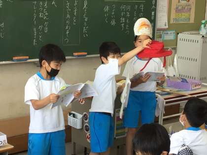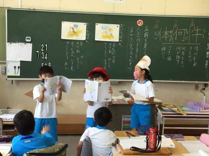 声だけでなく、動作や表情にも工夫をこらしながら音読に挑戦しています。