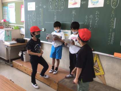 音読発表のつづきです。どのグループも、協力していました。みんなで声をそろえたり、1人で言ったりして、違いを出して工夫していました。