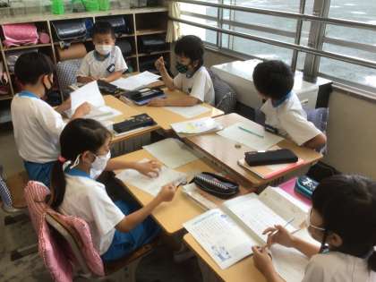 グループ活動のよさをいかして、よりよいものになるように相談しています。