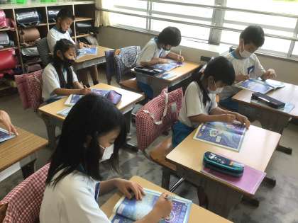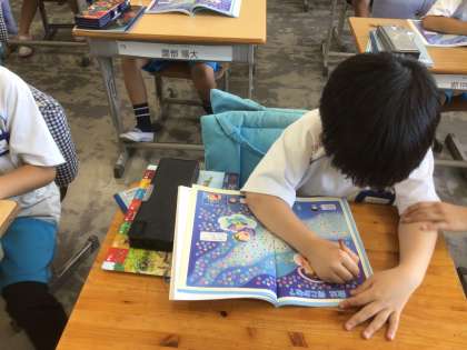 教科書のたくさんのお星様を数えました。大きな数に圧倒され、「どうやって数えるの?」「数、多すぎ〜!」という声が聞こえてきました。これから学習がんばります。