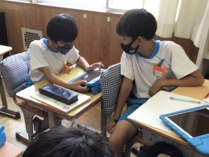 今日は、ゴミの分別について調べました。調べてわかったことをグループで話し合いました。