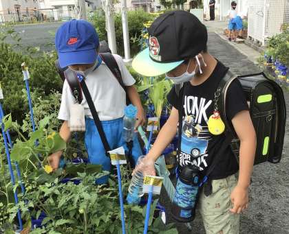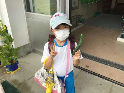 この日もこまめに水やりを行っていました。大きなキュウリも収穫できました。