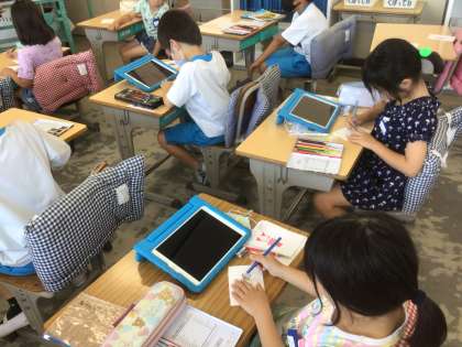 ザリガニのすみかについても、調べました。水があるところで、隠れる場所があるところ。明日は、似た風景を作って、「生きものつり大会」です。