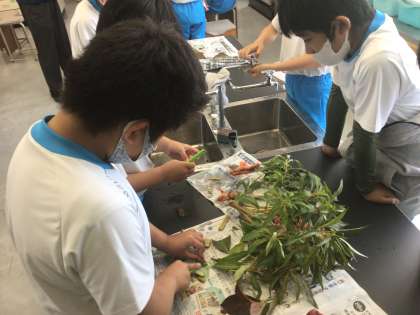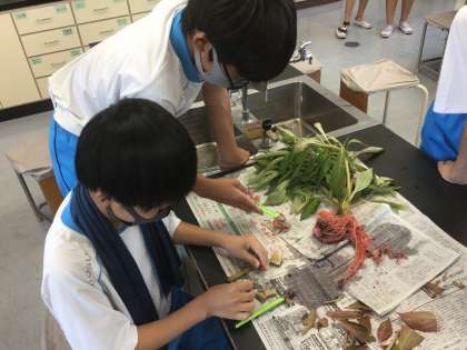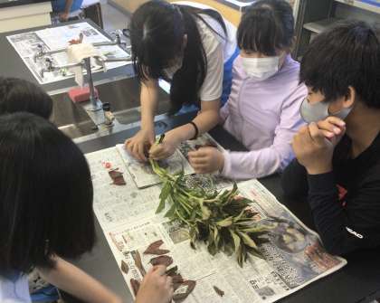 ホウセンカの茎や根を切って確かめました。