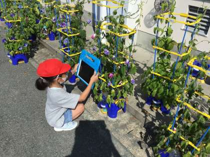 あさがおがたくさん咲いてきました。