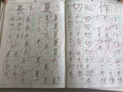 漢字練習のノートです。とても上手にしっかり練習しています。