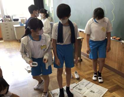 わくわく遊びでは、新聞ジャンケンをして楽しみました。