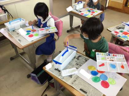 絵の具の使い方を勉強しました。