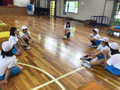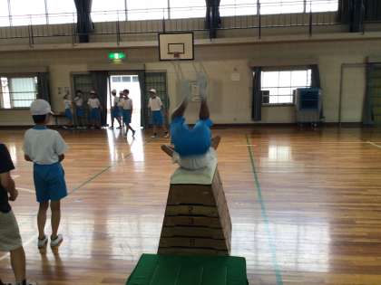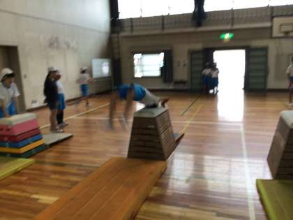 最後の跳び箱の授業でした。班同士で発表をしました。「誰の技が美しかったか」をテーマに、発表後は話し合いました。