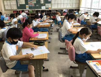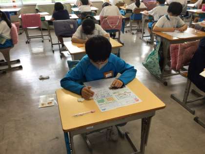 4組の授業です。この日は、ごみの処理と利用の単元テストを行いました。