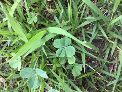 校庭の片隅に生えていました。4組の級訓もしあわせの四つ葉のクローバーです。