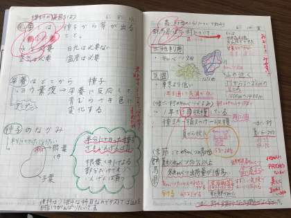 夏休み前の自主学習ノート課題で、色や図を使って見やすくノートをまとめている子がいました。