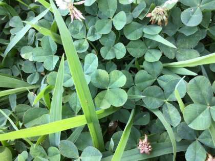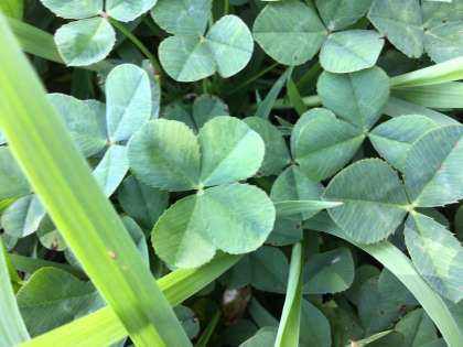 今日のしあわせの四つ葉のクローバーです。藤の木の近くに生えていました。
