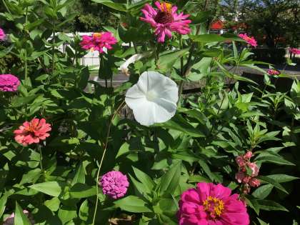 今日のお花たちです。西門の花壇にもアサガオの花が咲いていました。