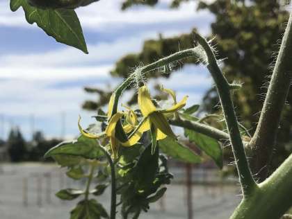 今朝のトマトの様子です。たくさんの実が実っています。可愛らしい小さな花が咲いていました。