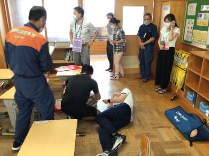 消防署の方の指導のもと 緊急事態発症時の対応の シミュレーション訓練を行いました。