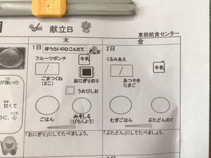 雌花クイズの実もこんなに大きくなりました。また、アサガオの本葉も大きくなっています。9月最初の給食のメニューもお知らせします。