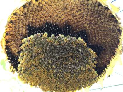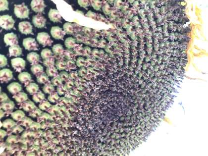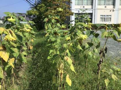 今朝のヒマワリの様子です。どの花も種子ができています。