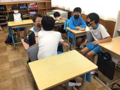 とても元気に登校できました。0時間目は、席替えをして新しい班になったので、班長などの班の係決めをしました。