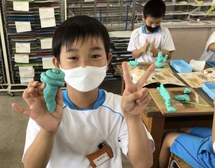 1組の図画工作の授業です。粘土を使って、創作活動をしました。