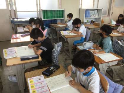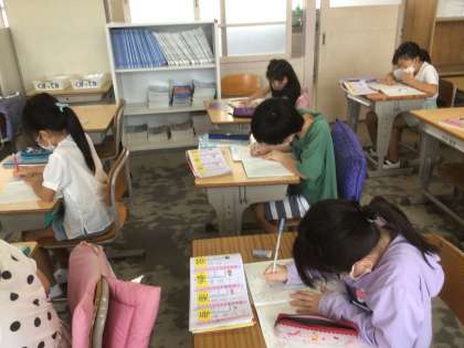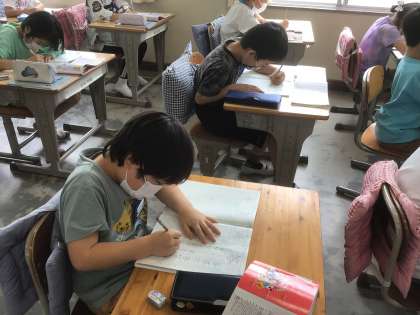 久しぶりの学校です。そして、漢字練習!でも、がんばりました。とても集中していましたよ。