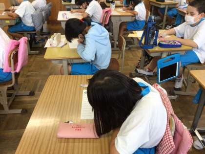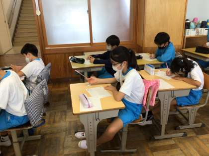 今日の5時間目には、新出漢字のテストを2枚行いました。しっかり書けている子が多かったです。