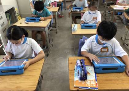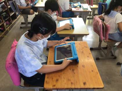 今日の4組の算数は、学習用タブレットのアプリを使いました。自分で選んだ問題を解いていました。