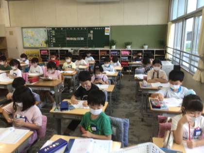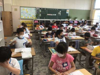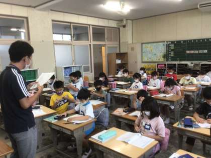 たかね先生と、学習です。反対の意味の言葉を、たくさん探しました。