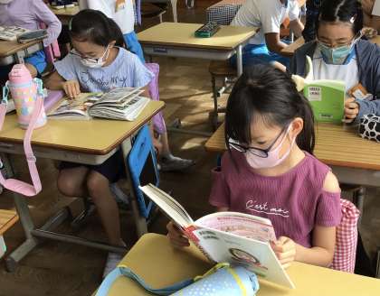 2組の様子です。このクラスも真剣に読書に親しんでいました。
