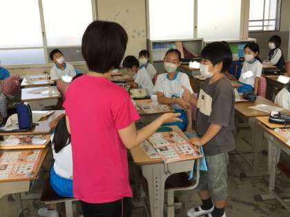 外国語では、先生とミニトークを行いました。ジェスチャーをつけながら質問にこたえる工夫が見られました。