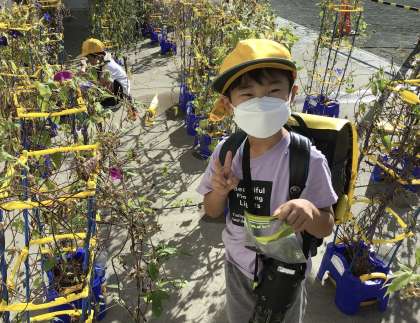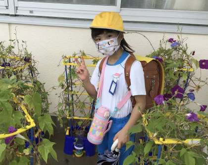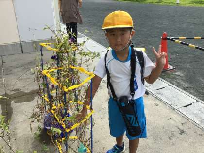 花が咲いているアサガオもあれば種子ができているアサガオもあります。たくさんの種子を採っていました。